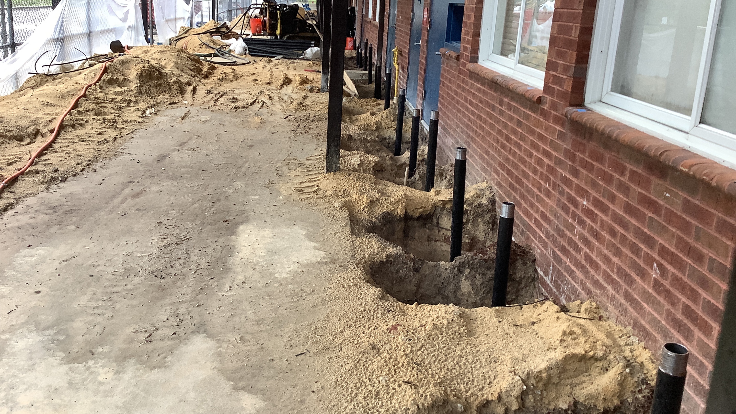 Any solution had to prioritize safety, minimize disruption, and deliver verifiable structural improvement without forcing extended shutdowns. That meant a phased plan capable of addressing both shallow soil defects and deep bearing—and documenting outcomes clearly for district stakeholders.