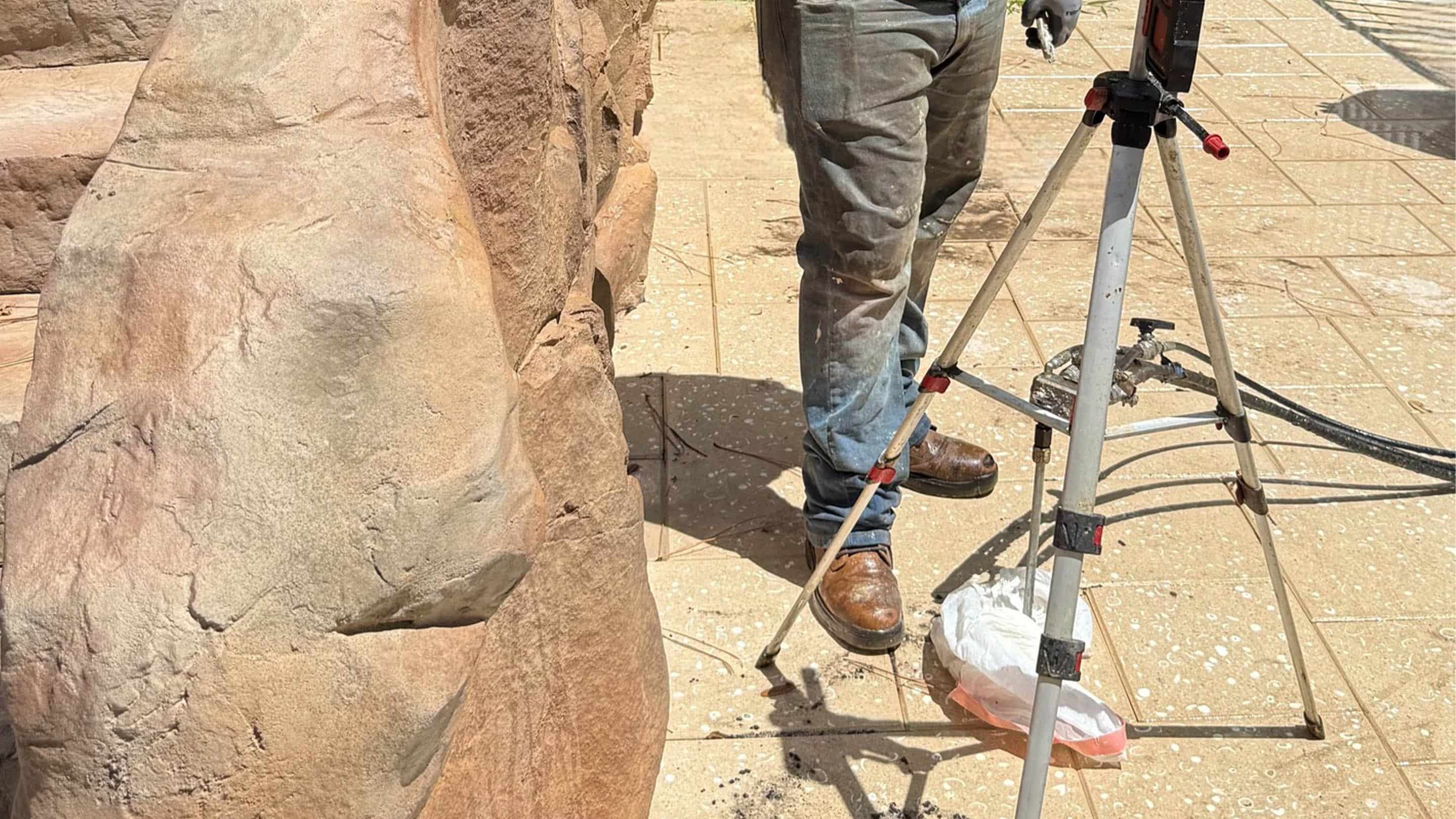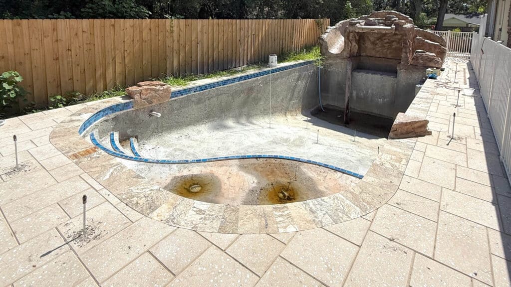 An engineering evaluation determined that the pool’s underlying soils lacked the density to support the structure long-term. Instead of traditional underpinning, the engineer recommended a faster, more precise solution: polyurethane chemical grouting.
